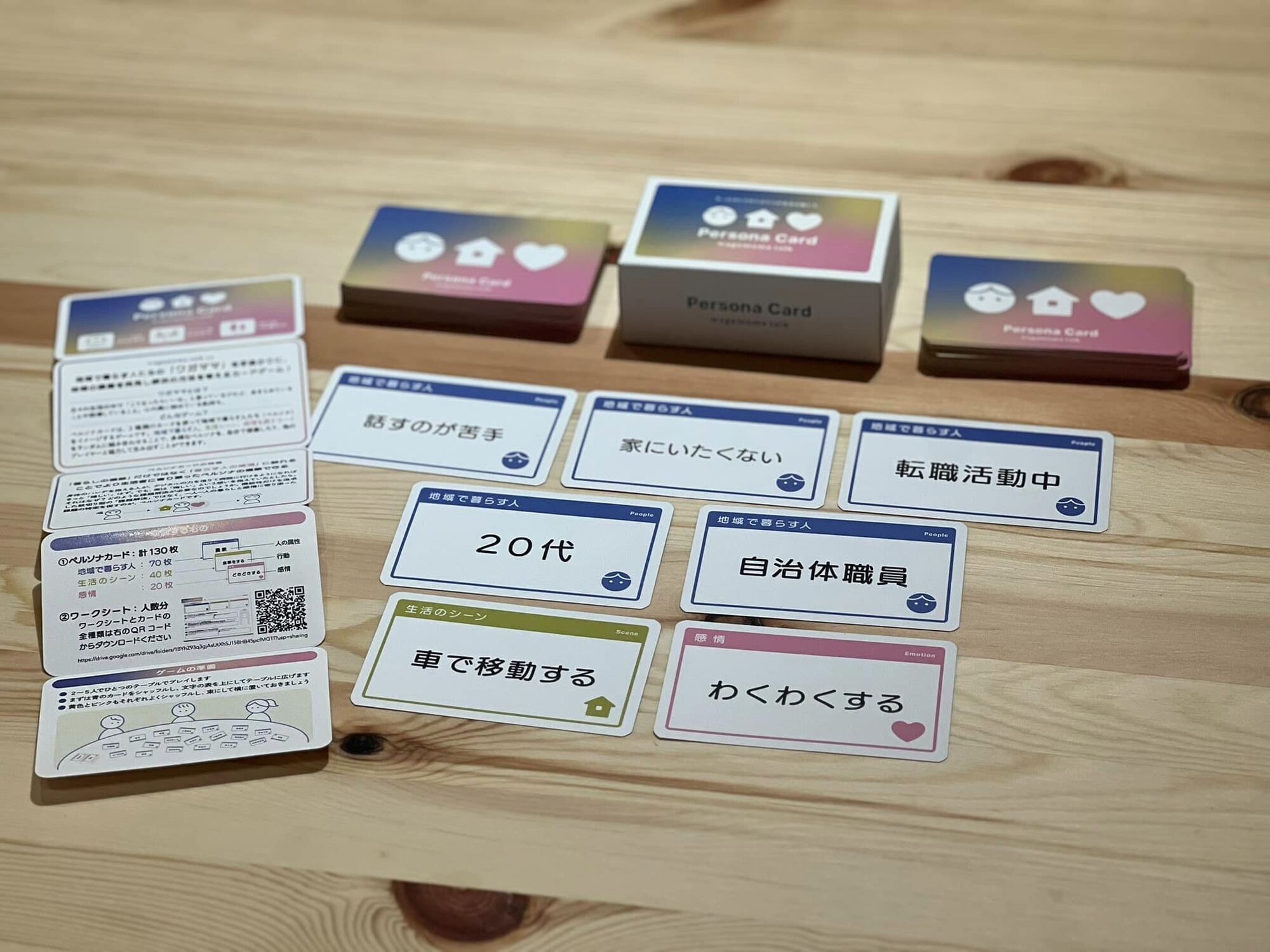地域で暮らす人、生活シーン、感情を表すカードをランダムに組み合わせることで、多様なペルソナを、自分で想像したり、他のプレイヤーと協力して生み出すことができます。